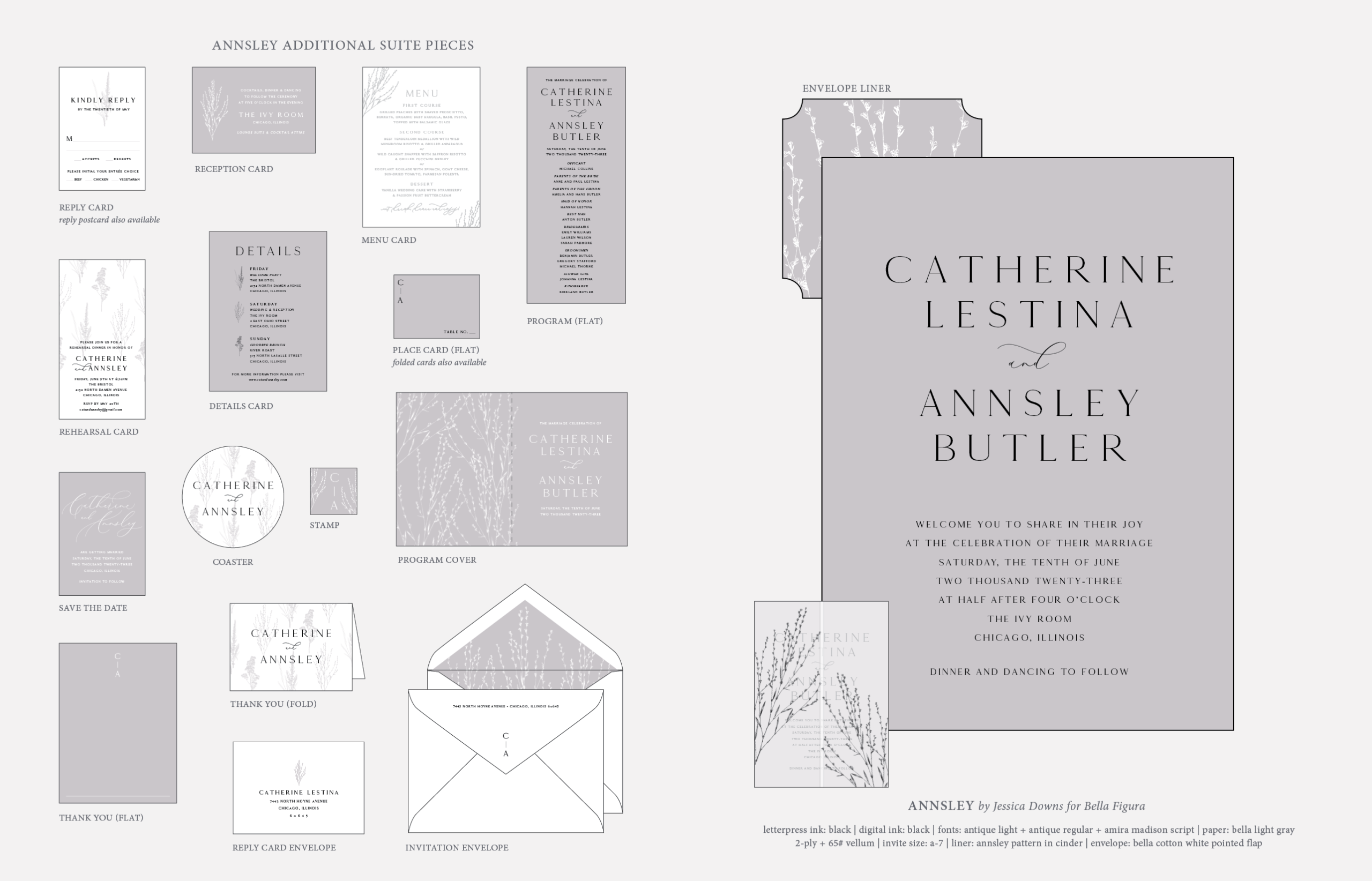 Save the Dates by Jessica Downs for Bella Figurafoil stamping: white matte | fonts: antique light + antique regular + amira madison script | paper: bella light gray (now pebble) 2-ply | size: a-5