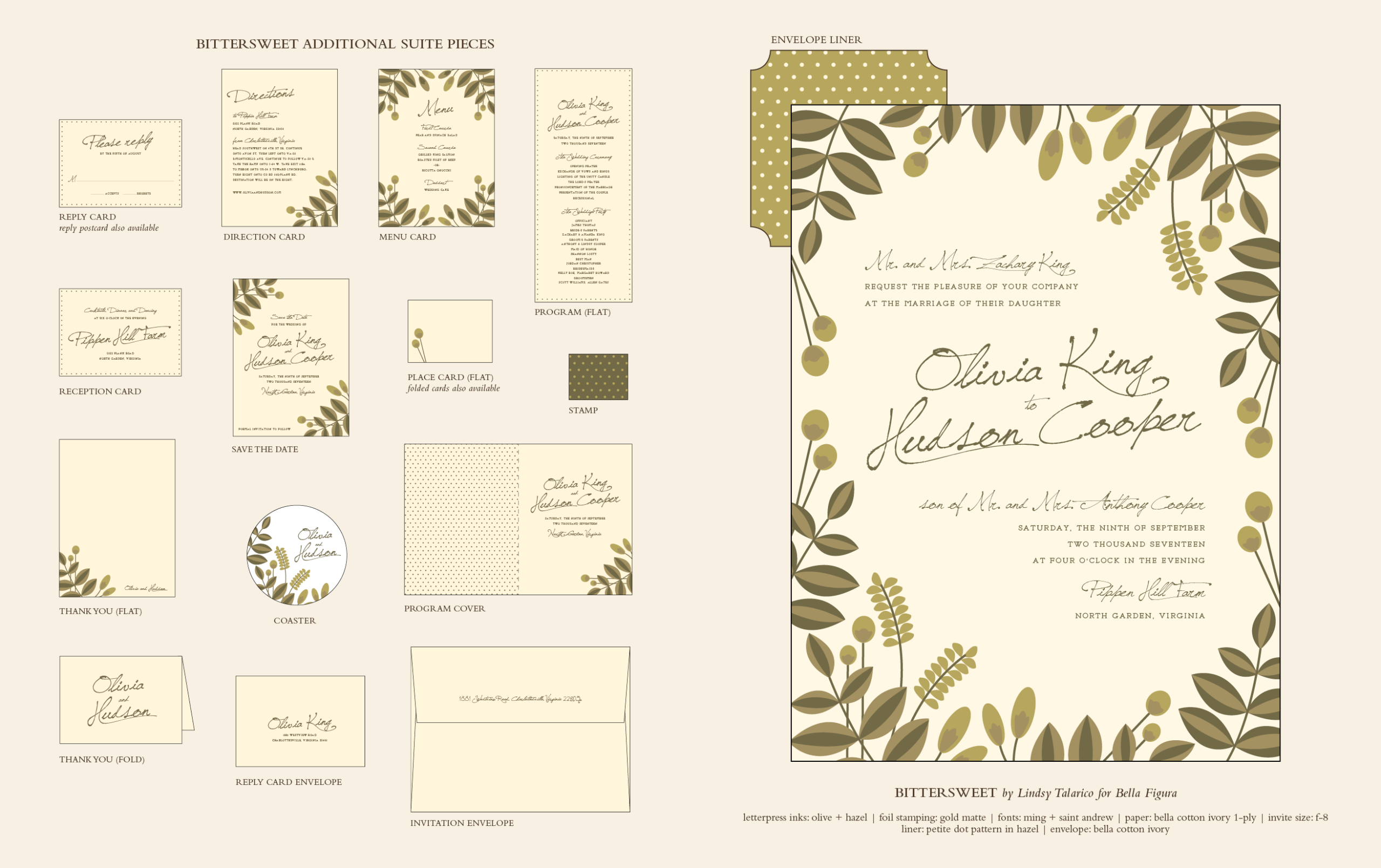 by Lindsy Talarico for Bella FiguraWith it’s fresh typography and fancy free botanical frame, Bittersweet letterpress wedding invitations are extraordinarily hard not to fall in love with. Lindsy Talarico’s delicate letterpress design is right at home at garden weddings, camp weddings, woodland weddings, and any kind of naturally inspired soiree.