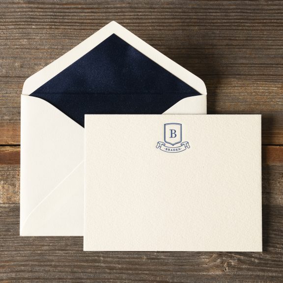 Social Stationery by Lindsy Talarico for Bella Figuraengraving ink: navy (card + envelope) | font: baskerville | paper: bella cotton ivory 2-ply | card size: a-2 (tier 1) | edge painting: navy | liner: navy velvet | envelope: bella cotton ivory pointed flap