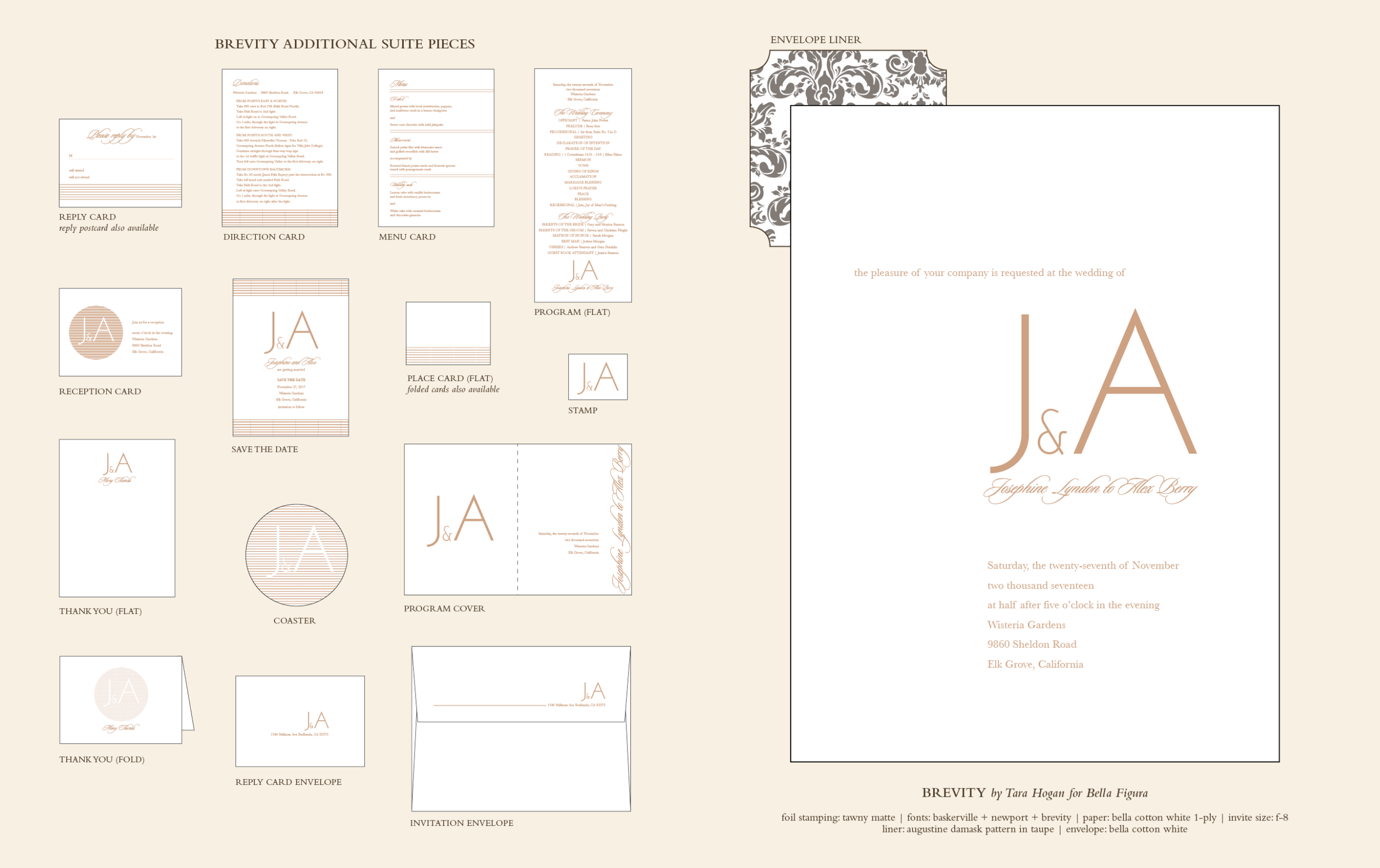 Wedding Invitations by Tara Hogan for Bella FiguraThis letterpress marriage of contemporary style and ultra-clean typography makes for a sophisticated vision of modern glamor. A feast for lovers of simple elegance and precise lines, Brevity is a delectably chic letterpress wedding invitation brought to us by Tara Hogan.