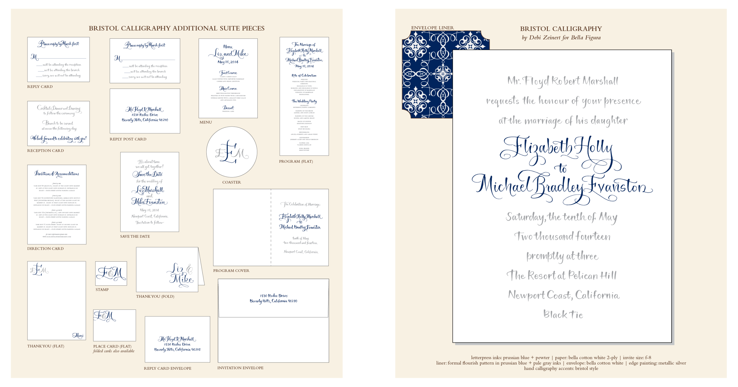 Featuring the exclusive hand calligraphy of Debi Zeinert, Bristol Calligraphy is a classically minded letterpress wedding invitation with a bit of an artistic wild streak.