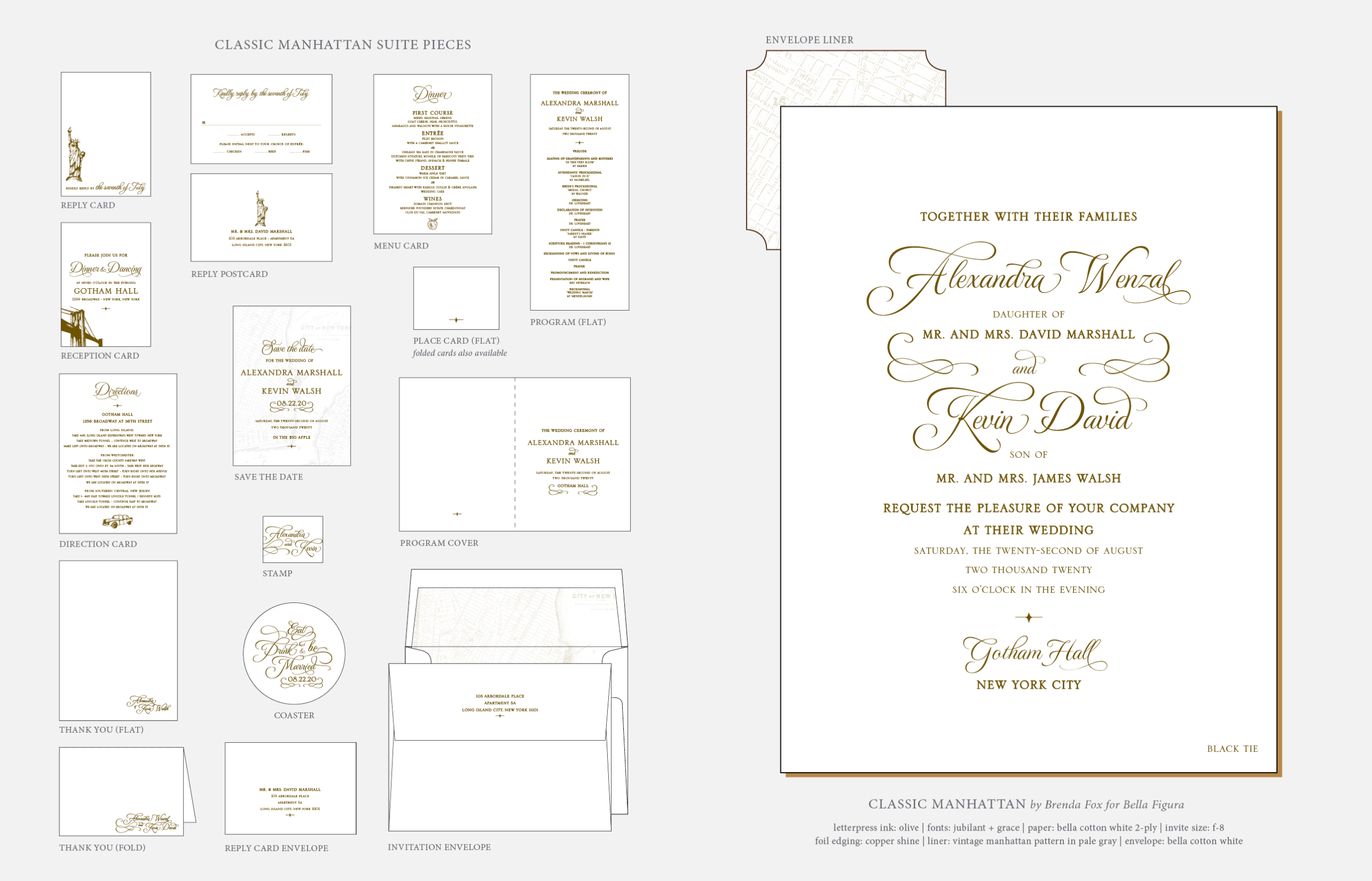 Retired Designs by Brenda Fox for Bella FiguraFrom designer Brenda Fox come Classic Manhattan letterpress wedding invitations - supremely elegant and perfectly polished. These wedding invitations carry an unparalleled aura of luxury, sophistication, and timeless style.