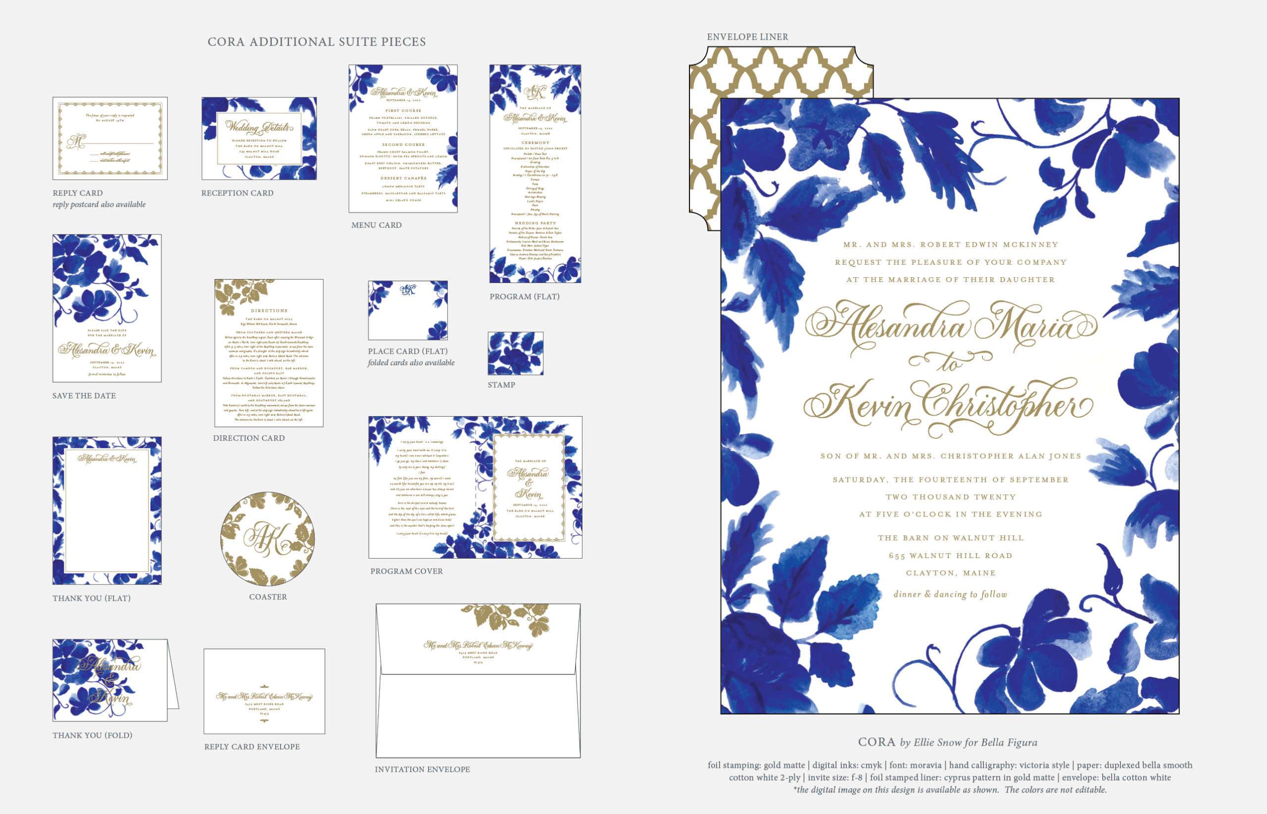 Wedding Invitations by Ellie Snow for Bella FiguraView additional pieces in the Cora sample suite.