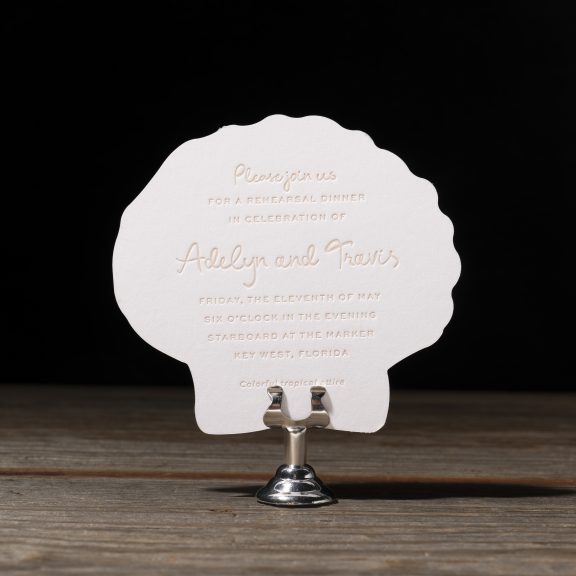 letterpress ink: bellini | digital ink: cmyk | font: eternal blossom + sweet sans | paper: bella smooth cotton bright white duplexed 2-ply | card size: a-7 (tier 3)