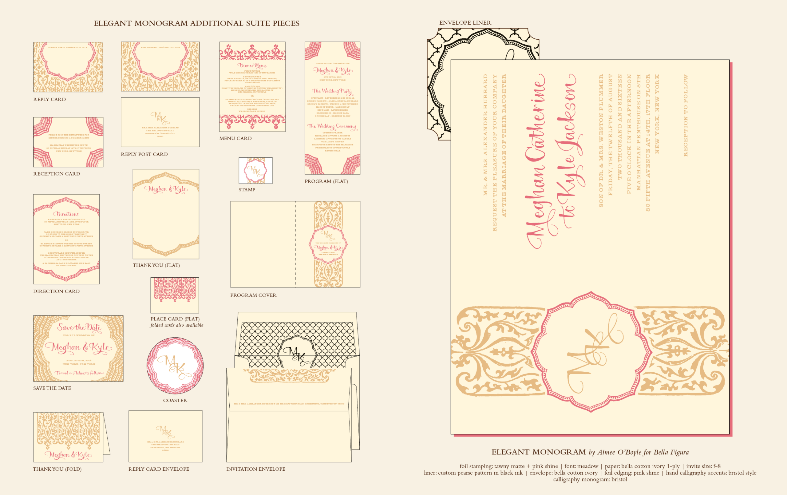 Wedding Invitations by Aimee O'Boyle for Bella FiguraThere it is—beaming in a rich, luxurious display of eastern inspired elegance, Aimee O'Boyle's Elegant Monogram letterpress invitation. Featuring a graceful calligraphy monogram and opulent printing, this sophisticated design shines with regal flair.