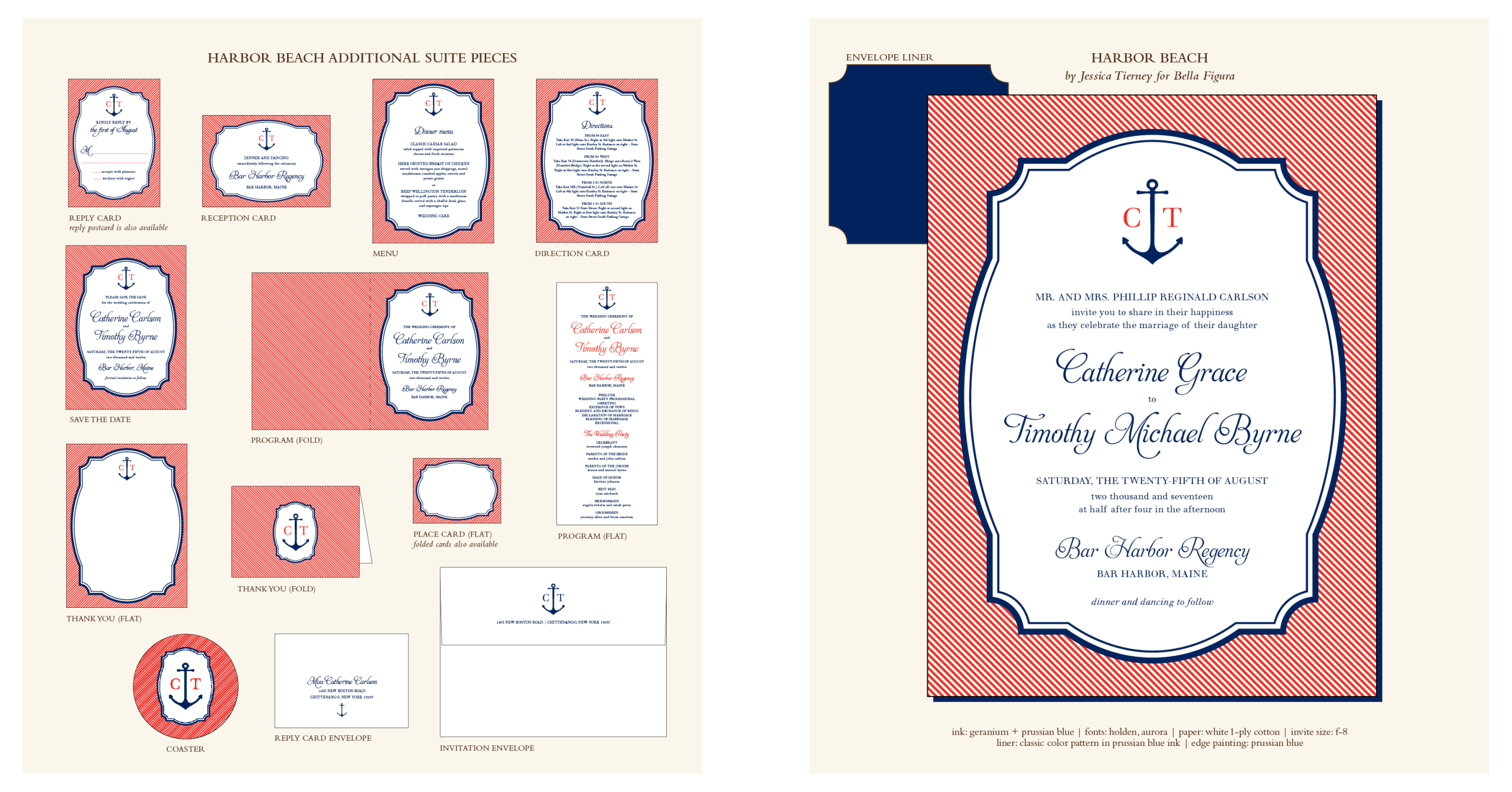 This Harbor Beach customization is a simplified, more formal version of the original, printed in pool and pewter letterpress inks.
