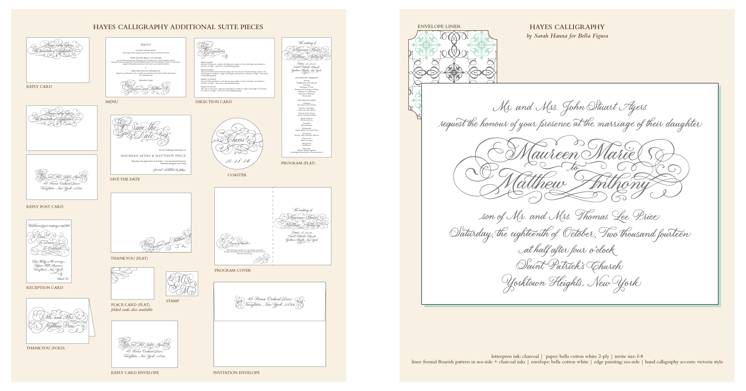Wedding Invitations by Sarah Hanna for Bella FiguraDesigner Sarah Hannah’s unmistakably refined hand calligraphy lends Hayes Calligraphy letterpress invitations a true aura of authentic glamor. They’ll steel the show entirely if you let them, what with their sensual curves and positively regal letterpress splendor.
