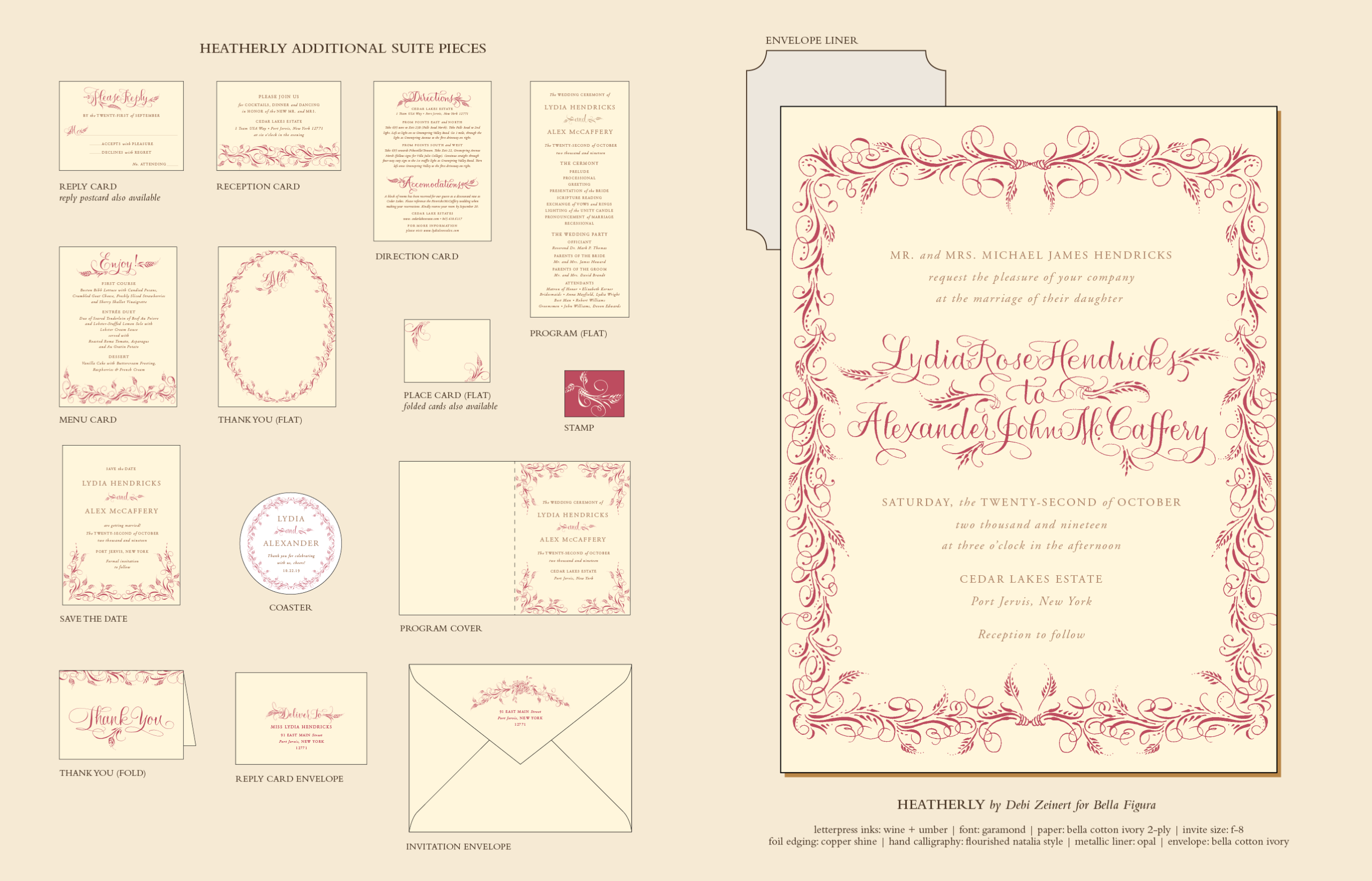 Wedding Invitations by Debi Zeinert for Bella FiguraView additional pieces in the Heatherly sample suite.