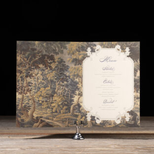 letterpress ink: mineral + yale | sculpted embossing: blind | digital inks: cmyk | fonts: calserif regular + diplomatic script | paper: bella smooth cotton ivory 1-ply | card size: 5.19 x 7.19 folded (tier 4)