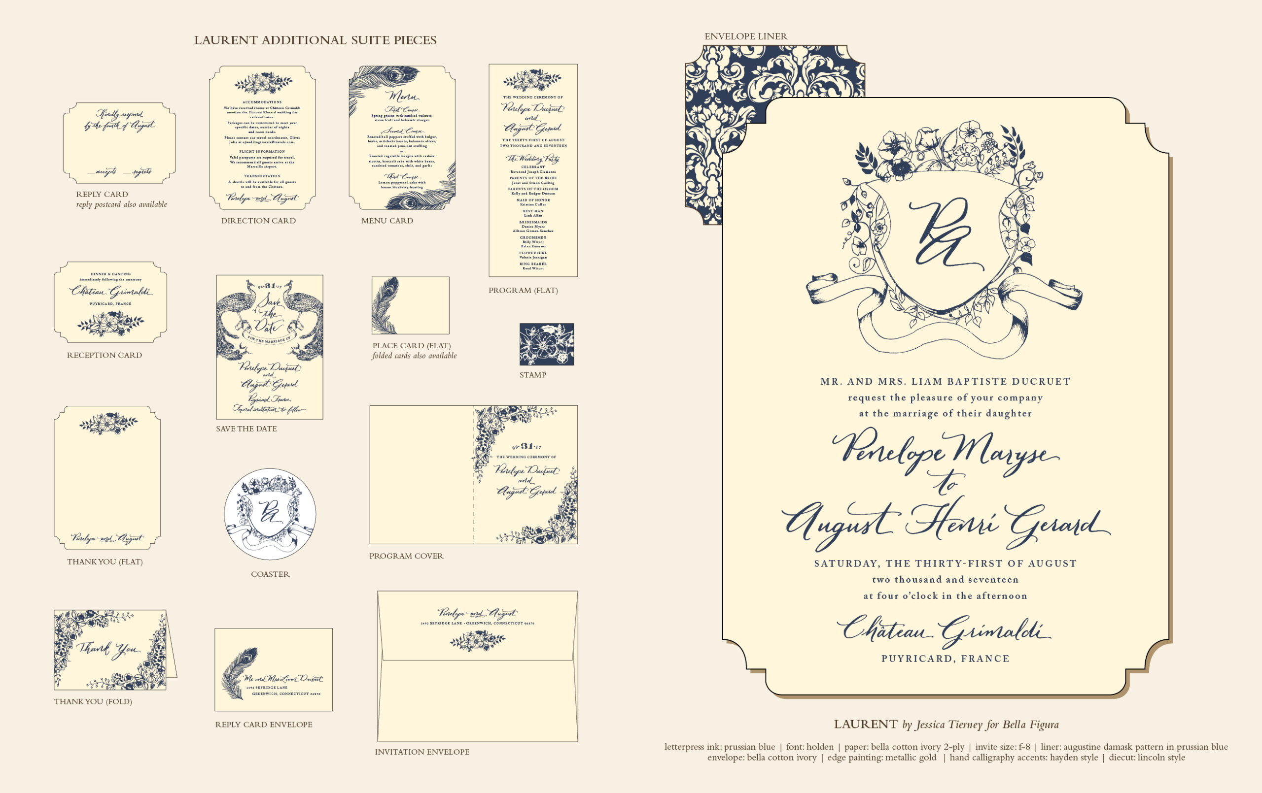 Wedding Invitations by Jessica Downs for Bella FiguraIt was foretold by the ancients that there would once come a regally inspired, beautifully printed letterpress wedding invitation that would rid the world of mediocre invitations forever. That time is upon us, and that invitation is Laurent - a dignified and glorious creation from letterpress conjurer Jessica Tierney.