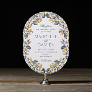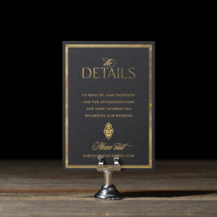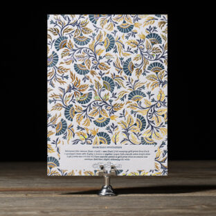 foil stamping: gold prism shine | fonts: utile display + classico + angeline | paper: dark blue 1-ply | card size: a-5 (tier 1)
