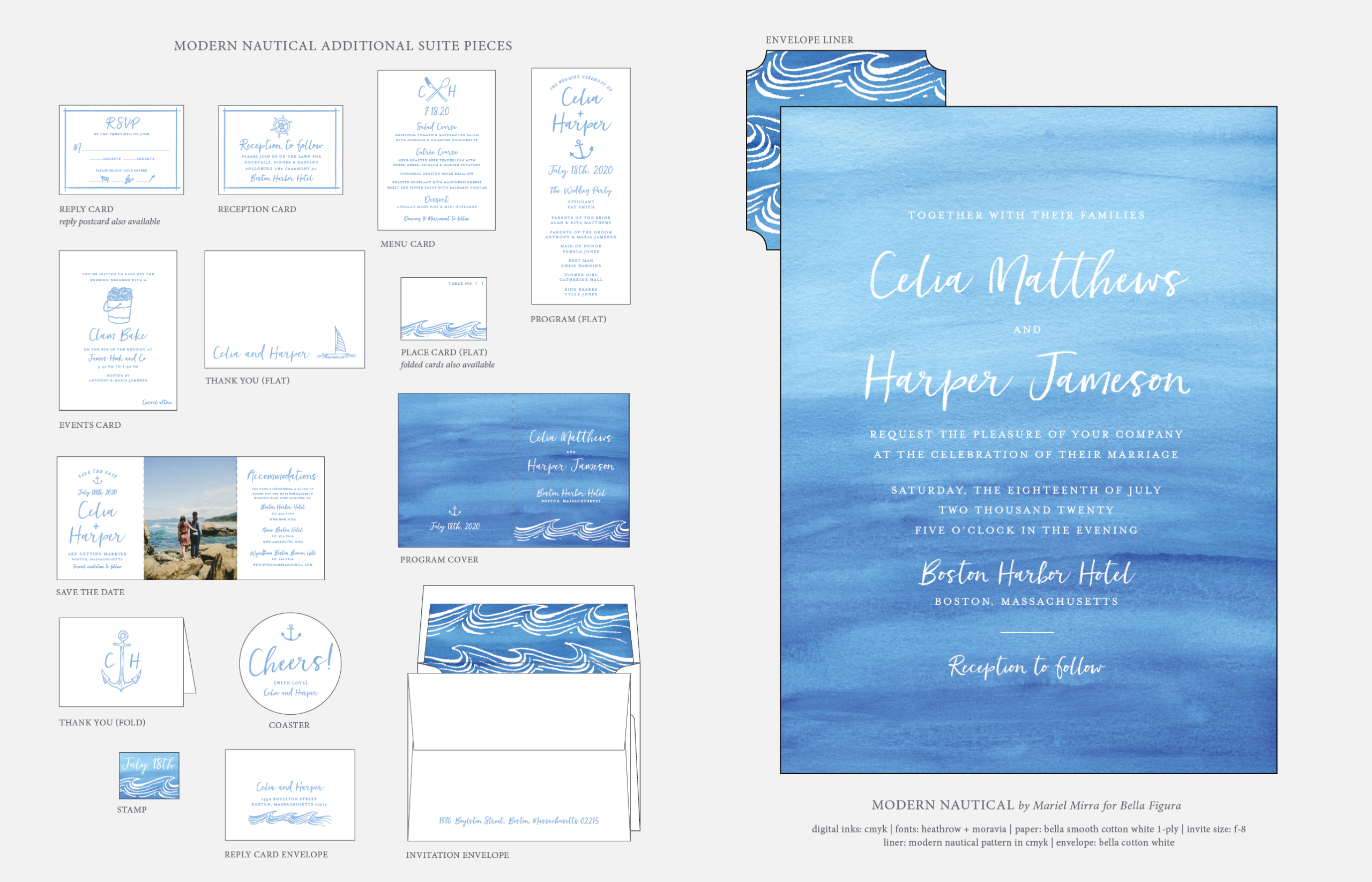 Wedding Invitations by Mariel Mirra for Bella FiguraView additional pieces in the Modern Nautical sample suite.