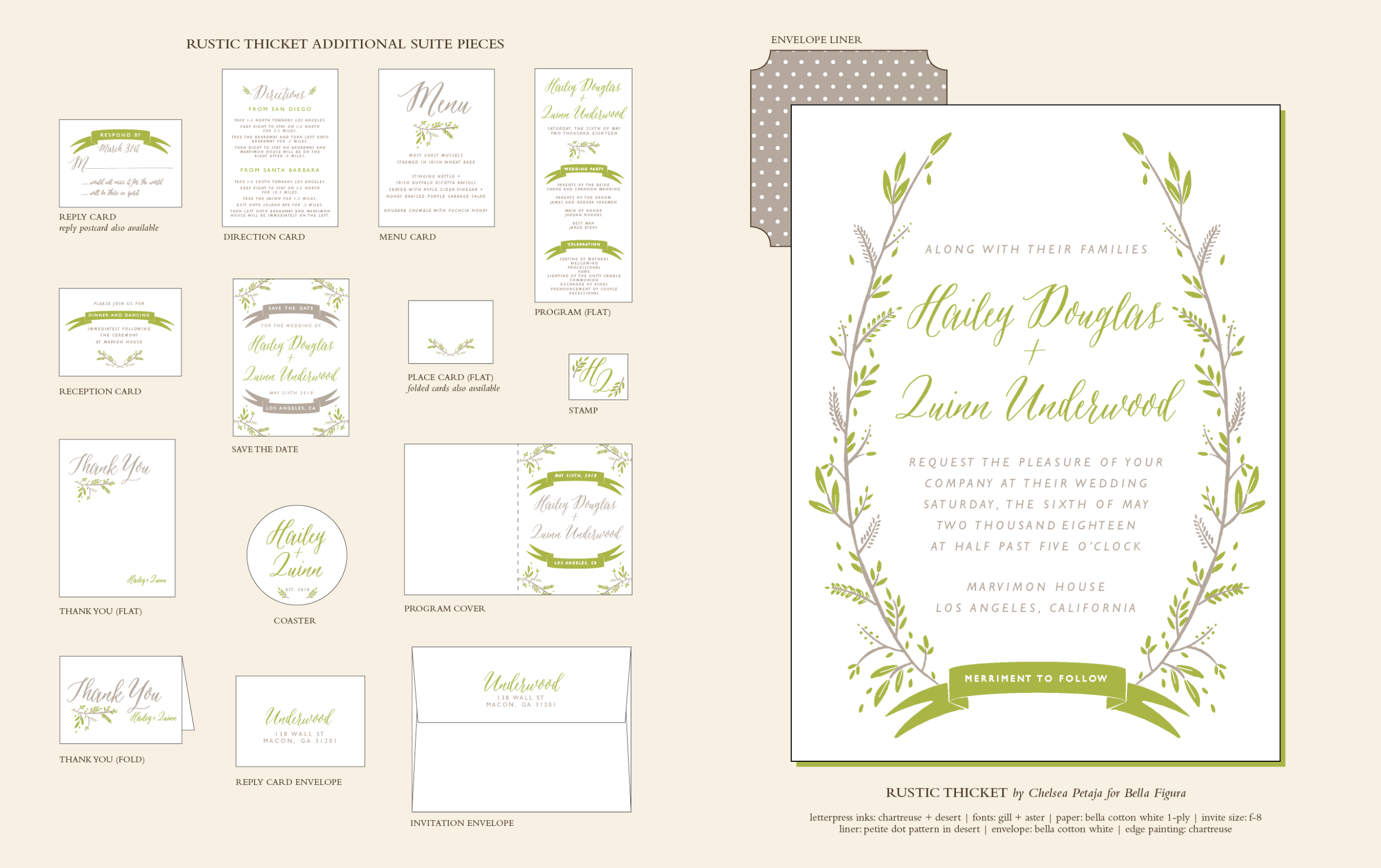 Wedding Invitations by Chelsea Petaja for Bella FiguraWoodland wedding lovers rejoice - these rustic wedding invitations abound with natural inspiration the likes of which you've only dreamt of in a letterpress invitation! We picture a fun-drenched wedding at at an old rehabbed boy scout camp, complete with canoeing, archery, bonfires, and of course, graffiti-incised bunk beds.