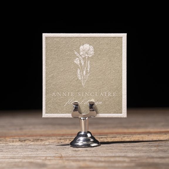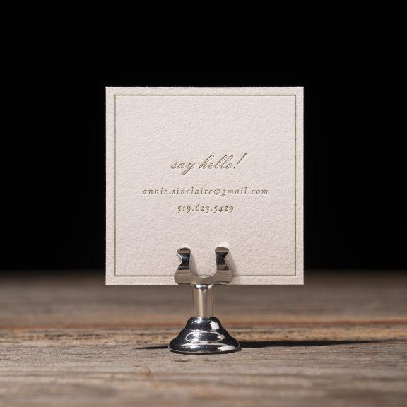 letterpress inks: spruce (front + back) | fonts: cormorant garamond + sackers italian script | paper: bella cotton white 2-ply | card size: custom cut 3 x 3 (tier 1)