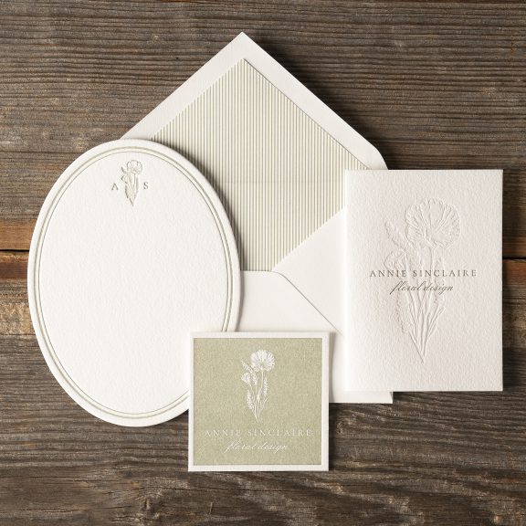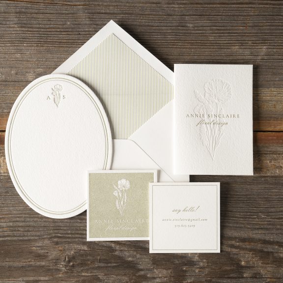 letterpress inks: spruce + blind deboss | fonts: cormorant garamond + sackers italian script | paper: bella cotton white 1-ply | card size: a-5f (tier 2)