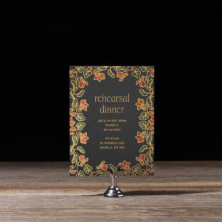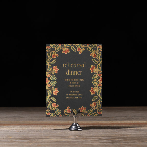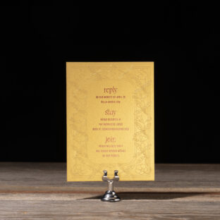 foil stamping: claret shine + green shine + gold matte | fonts: akzidenz-grotesk std + aida | paper: evergreen 1-ply | card size: a-2 (tier 1)