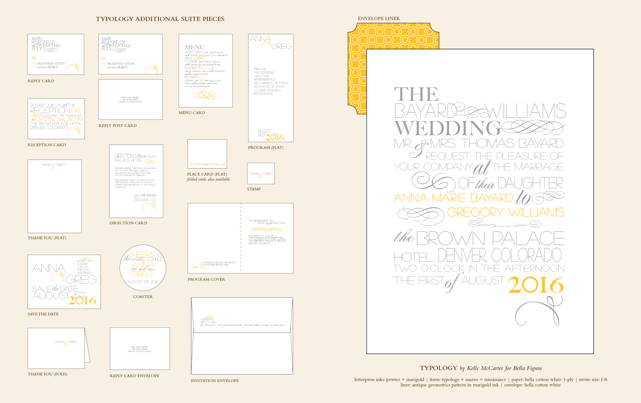 by Kelle Anne McCarter for Bella FiguraA celebration of modern typography, Typology is a chic, contemporary letterpress wedding invitation design from Kelle McCarter.