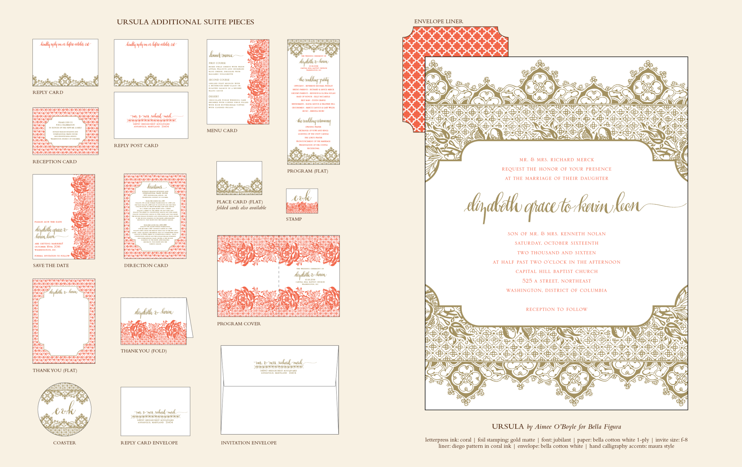 by Aimee O'Boyle for Bella FiguraWith distinctive notes of eastern influence, Ursula letterpress wedding invitations from designer Aimee O'Boyle feature a sophisticated and posh blend of mosaic and botanical design elements.