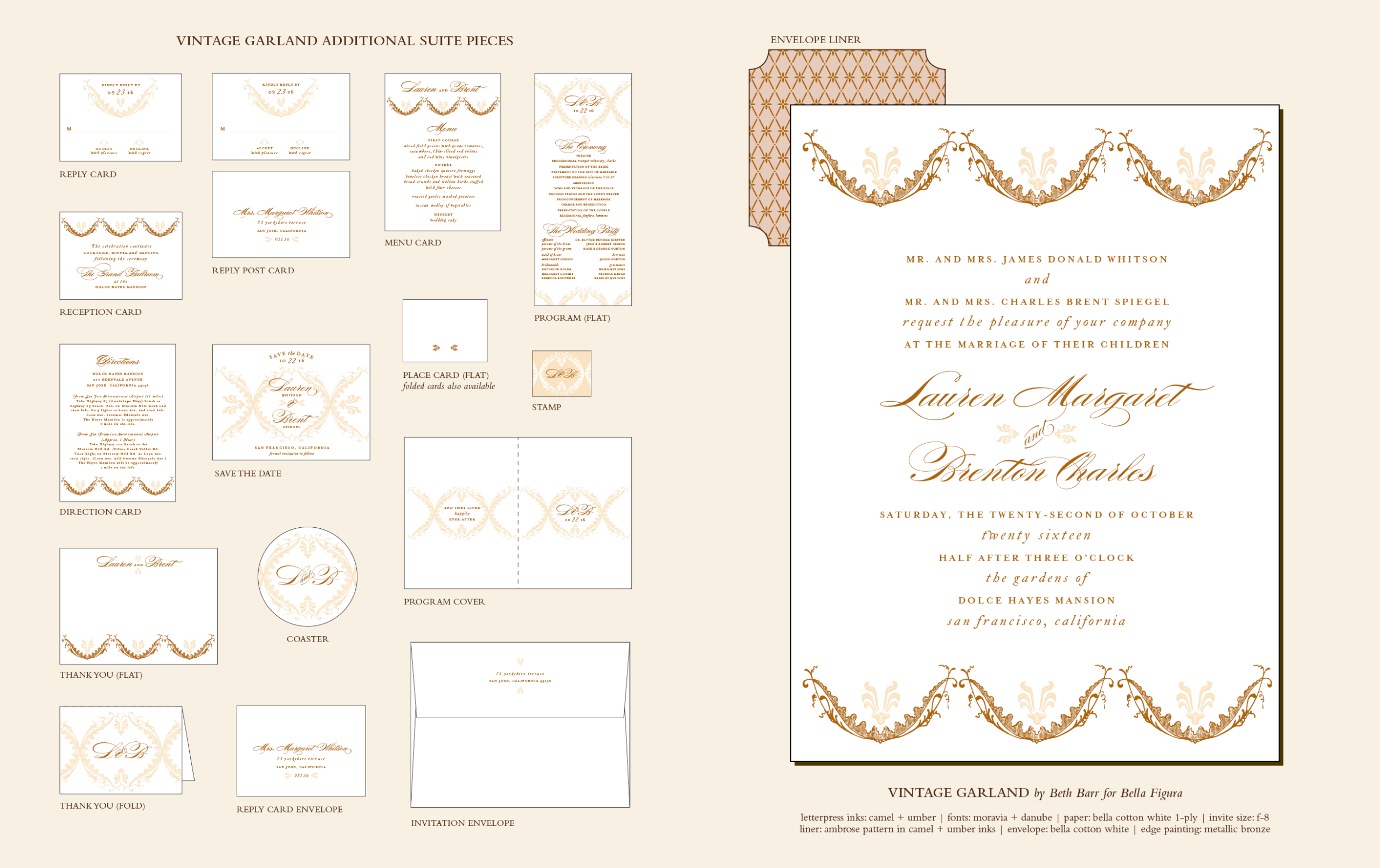 by Beth Barr for Bella FiguraWith all the elegant sophistication and grandeur of a time and place long past, Vintage Garland letterpress wedding invitations are refined, formal and ready for a dazzling celebration. Featuring a classic, Victorian inspired design and letterpressed on our luxurious cotton paper, these romantic letterpress invitations from Beth Barr are ready for a revival of all the best parts of history.