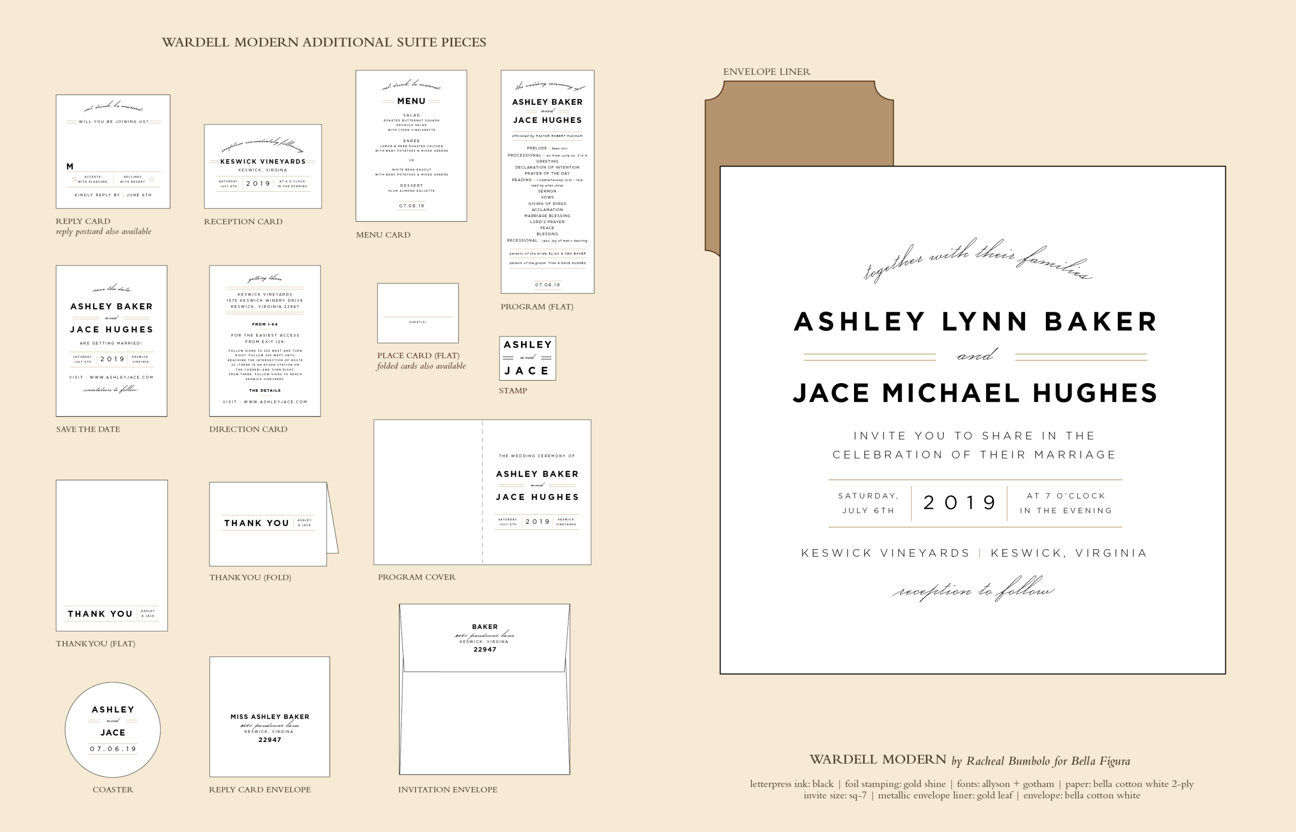 Wedding Invitations by Racheal Bumbolo for Bella FiguraView additional pieces in the Wardell Modern sample suite.