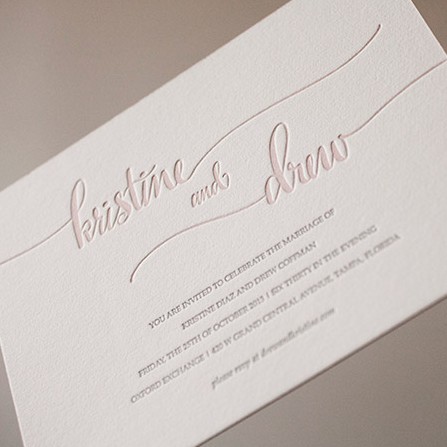 Colette letterpress wedding invitations featuring romantic hand calligraphy