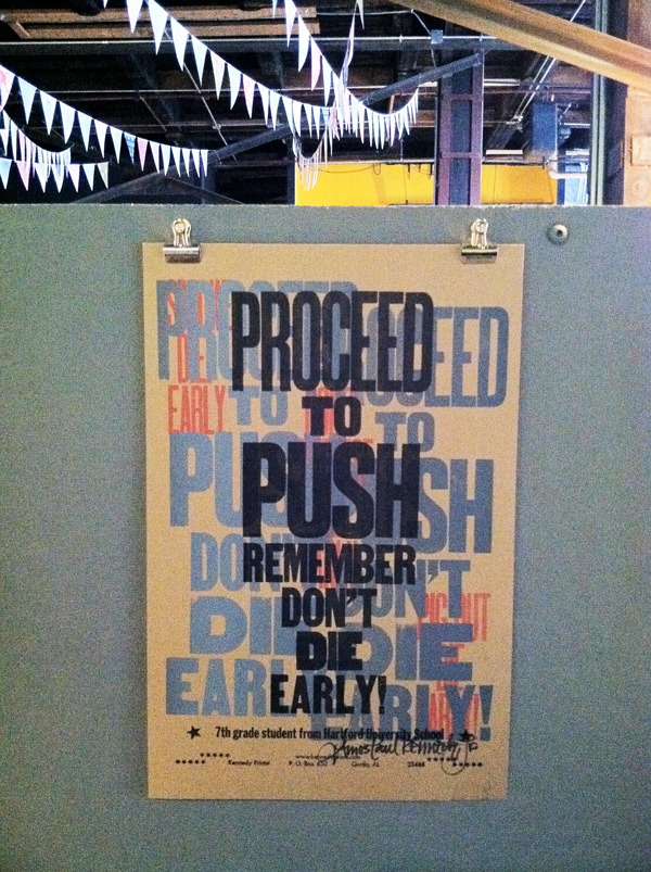 Monday, February 28 Around the Studio – Letterpress Motivation Title: Motivation a la Amos Photographer: Chris, letterpress client coordinator champ Medium: iPhone @ Bella Figura since: 2010