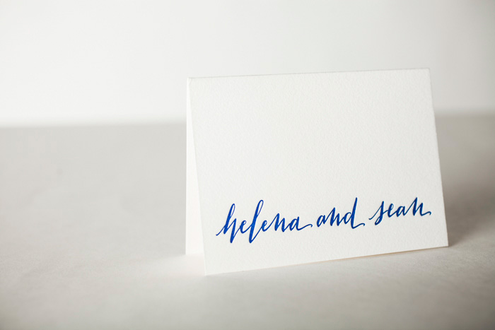 Mitty style hand calligraphy in Cobalt letterpress ink: