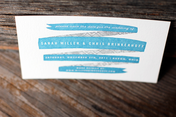 We’ve spied a recent color trend centered on our gorgeous Mediterranean ink, showcased here on a Ribbon letterpress save the date. The color is cool and watery and plays nicely at weddings both formal and casual, modern and traditional. We just can’t get enough of these awesome save the dates!