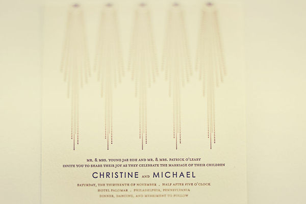 This gorgeous real wedding, first featured on Style Me Pretty, features an absolutely beautiful Bella Figura couple and a stunning Philadelphia wedding at Hotel Palomar. Christine and Michael chose our Bejeweled letterpress invitations, printed in antique gold and amethyst inks, to kick off their celebration. From there, all the details were impossibly elegant with a dash of modern glamor. Bella Figura calligrapher Patricia Mumau of Primele penned gorgeous place cards and calligraphy menus and the incredible Jesse and Whit of Our Labor of Love took some of the most gorgeous wedding photos we’ve ever seen. Much love and best wishes to you both, Christine and Michael, and thank you for allowing us to share your beautiful wedding!