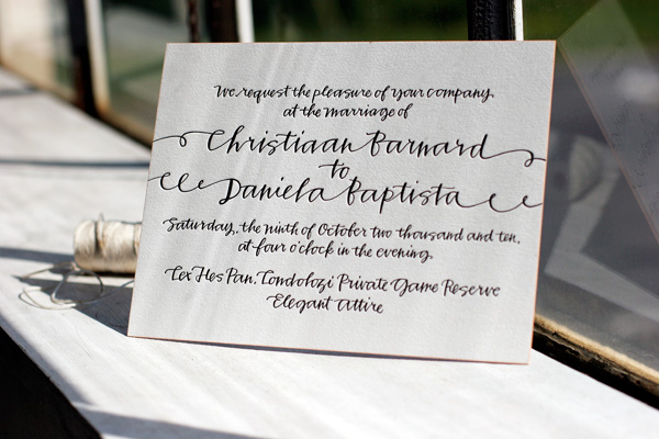 {String Calligraphy wedding invitations by Patricia Mumau.}
