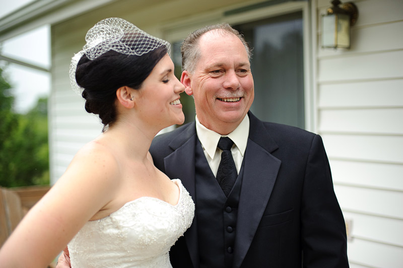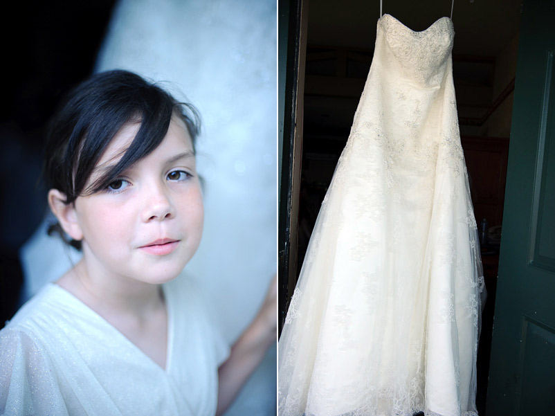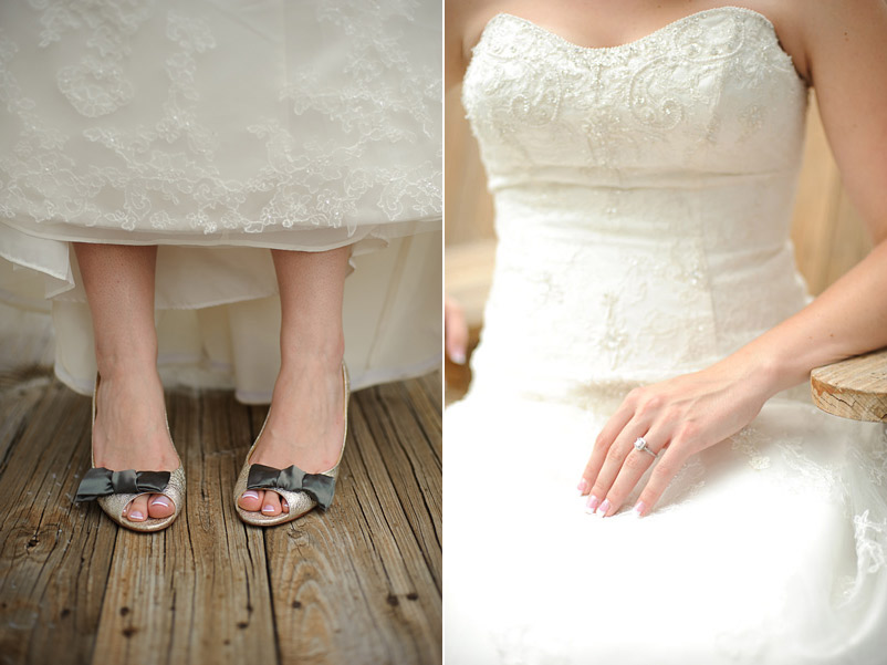 I wore a gorgeous lace Casablanca dress that I still love, champagne gold and pewter shoes from J.Crew, a Twigs & Honey flower in my hair, and a birdcage veil from Something Bold. My daddy walked me down the makeshift aisle and we both cried the whole time.
