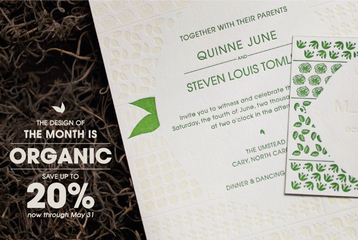 ![A formal take on our Organic design, the May design of the month. [on sale now for 10% off through May 31, 2013!] The Organic letterpress invitation suite from Bella Figura is on sale through May 31, 2013](https://d1mkprg9bp64fp.cloudfront.net/wp-content/blogs.dir/3/files/2013/05/organic-formal.jpg)