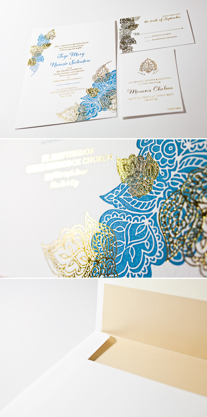 Our letterpress wedding invitations have received some amazing publicity lately, so today it’s time again to say thank you to the amazing editors who have shined the spotlight on Bella Figura this spring! Our first feature is from Martha Stewart Weddings, where we created foil stamped and letterpress wedding invitations for one of their gorgeous real weddings. Megan, the bride, submitted the artwork for us to print — we love the glamorous outcome!