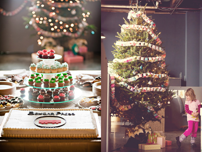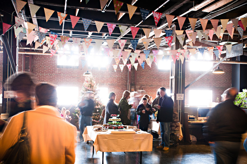 With the new year here, we wanted to show off a few photos from our recent open studio event, which took place a few weeks ago. We had the most fun introducing the local community to letterpress and showing off our print shop and new offices! We invited the local public, media, clients, vendors, friends, family and anyone with an interest or passion for printing and the arts to come pay us a visit. In return, we had printing demonstrations, tours, giveaways, an excess of sweets and goodies from a local bake shop and loads of letterpress fun. We decorated with DIY paper chain garlands for the Christmas tree and colorful paper bunting strung from the cross beams in our office, all of which were created from gift wrap from our sister company, Smock. Our friend and amazing wedding photographer Alice G. Patterson spent the day with us and captured these snippets from the day and her photos already have us excited for next year!