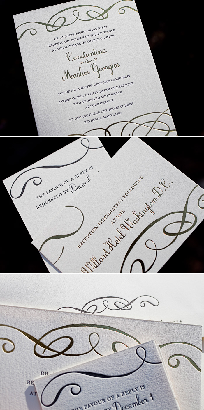 letterpress ink: black | foil: gold shine | fonts: botany + jovial | paper: 1-ply ivory | invite size: f8 | customization #: 15185
