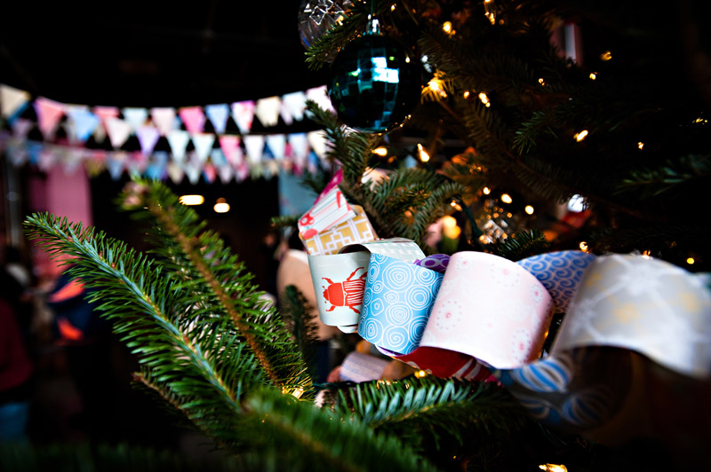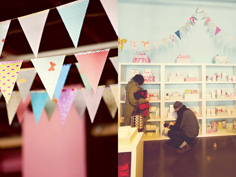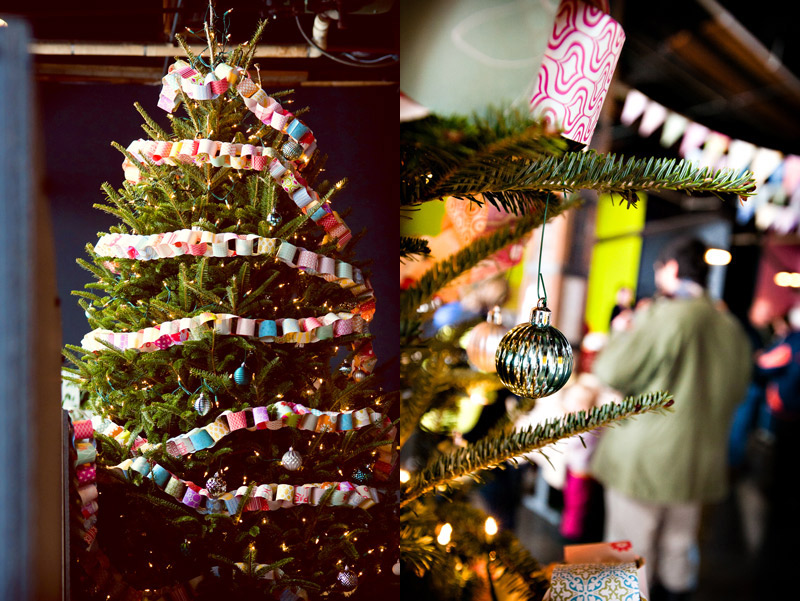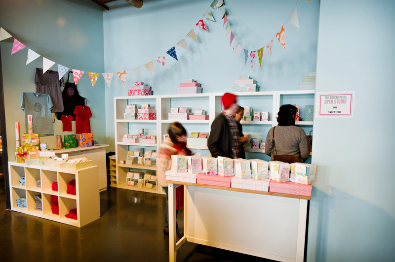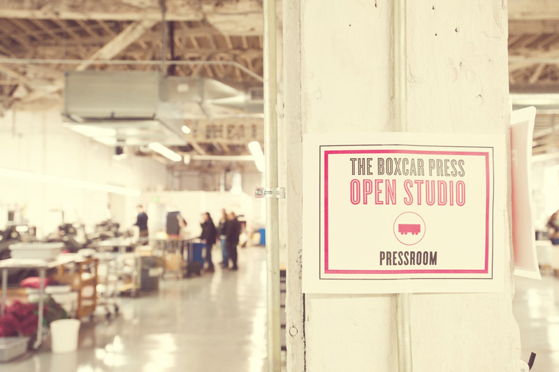 With the new year here, we wanted to show off a few photos from our recent open studio event, which took place a few weeks ago. We had the most fun introducing the local community to letterpress and showing off our print shop and new offices! We invited the local public, media, clients, vendors, friends, family and anyone with an interest or passion for printing and the arts to come pay us a visit. In return, we had printing demonstrations, tours, giveaways, an excess of sweets and goodies from a local bake shop and loads of letterpress fun. We decorated with DIY paper chain garlands for the Christmas tree and colorful paper bunting strung from the cross beams in our office, all of which were created from gift wrap from our sister company, Smock. Our friend and amazing wedding photographer Alice G. Patterson spent the day with us and captured these snippets from the day and her photos already have us excited for next year!