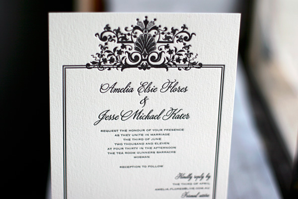 An ultra sophisticated customization of our Tasha letterpress wedding invitations, this customization is printed in classic black ink on our ivory paper. The look is elegant and timeless, and perfect for a formal wedding with super chic style.