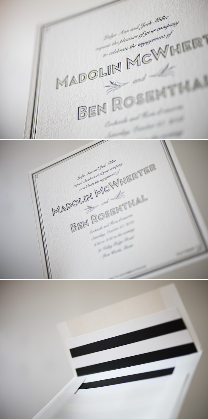 Letterpressed in a really sophisticated paring of Black and Sand inks, this engaging version of Ellie Snow‘s True Vintage invitation design really stands out beautifully. Thanks to Byrd + Bleecker for sending this for us to print!