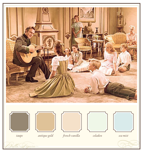Any film that can make you feel like a child 30 years after seeing it for the first time is pure magic. This photo gives me chills, as much for the utterly gorgeous colors as for the utterly gorgeous Captain Von Trapp. The perfect Sound of Music wedding color palette is soft and elegant in shades of taupe, antique gold, french vanilla, celadon, and sea mist.