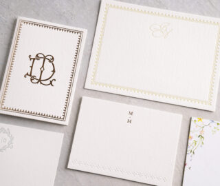 Our thank you notes and social stationery can be folded or flat, and typically include your name or monogram. View more on our blog